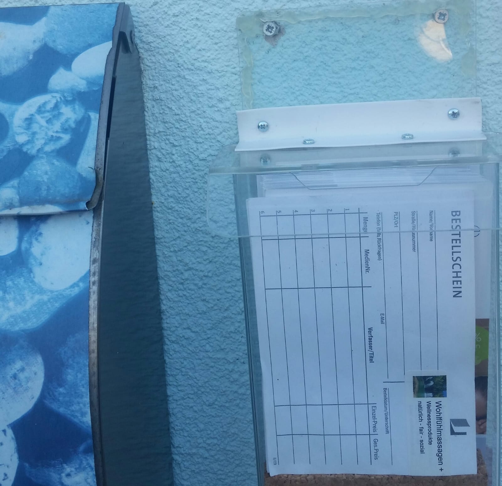 oder schriftlich in den "steinigen" Briefkasten rechts von der Eingangstür unseres "Burglädchens".